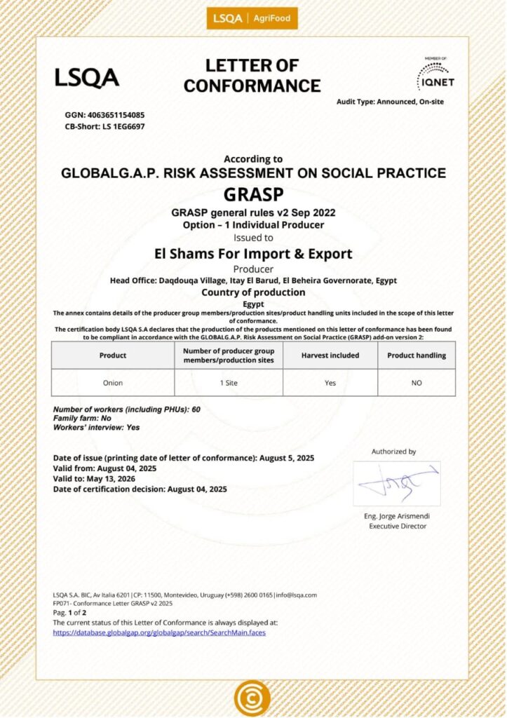 Established in 2013, Al Shams Import & Export is one of Egypt’s leading exporters of fresh produce, specializing in red and yellow onions, carrots, and potatoes